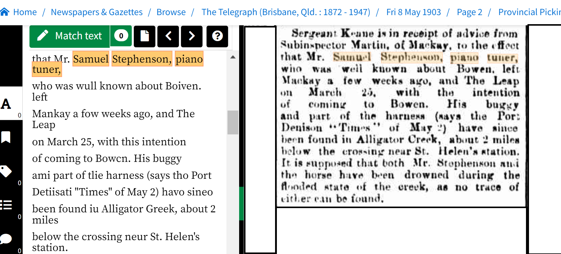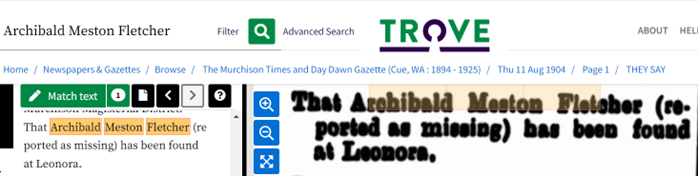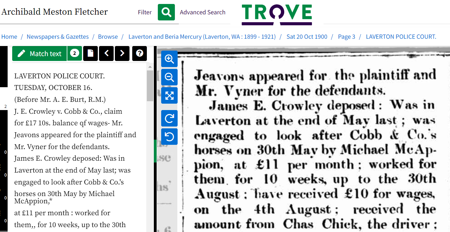 1900 AM Fletcher witness. The Laverton and Beria Mercury of Saturday 20th October 1900