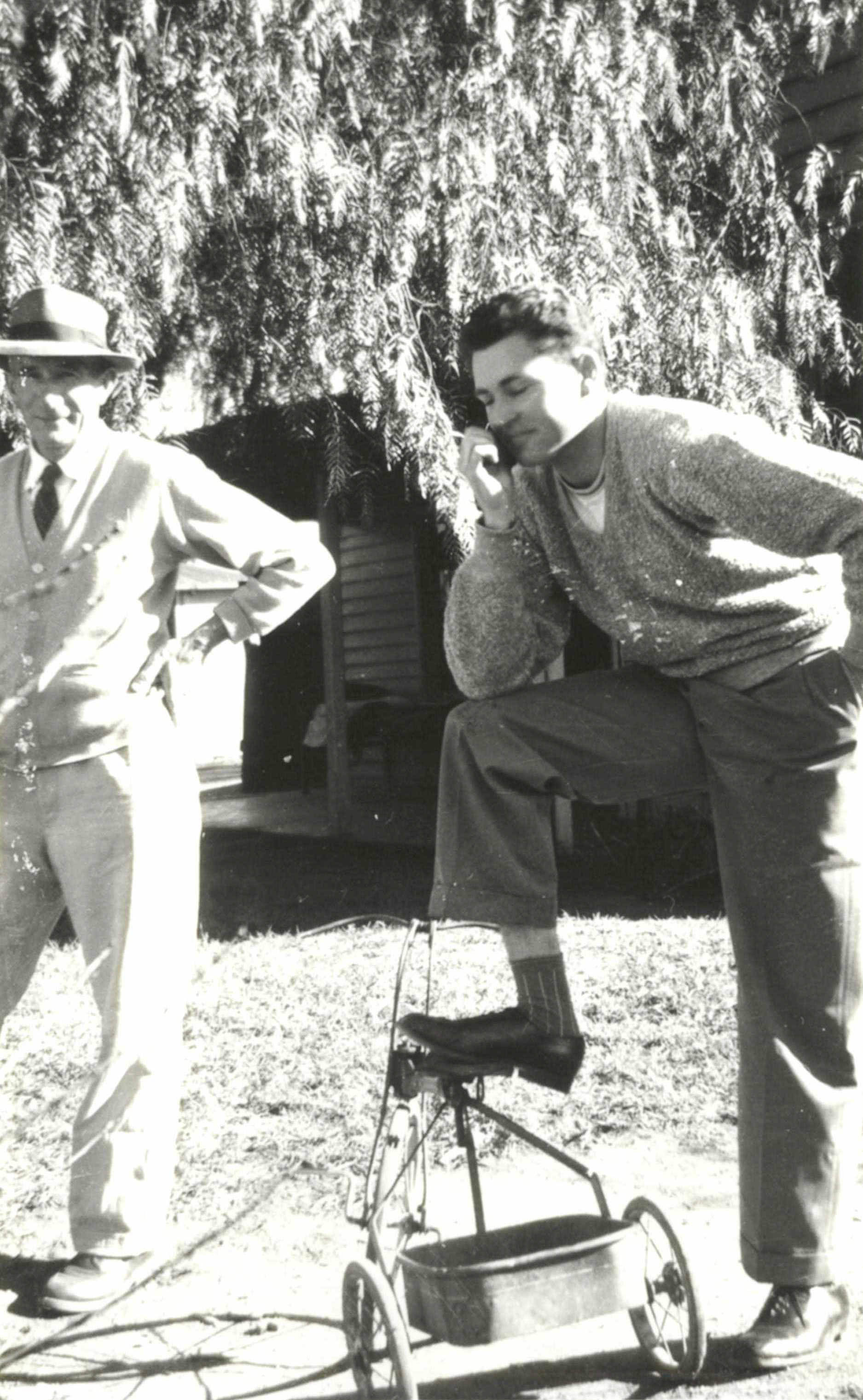 1962 Cobar, Dad with cousin John, His claim to fame - he fell out of the tallest tree in Cobar and split his lip.