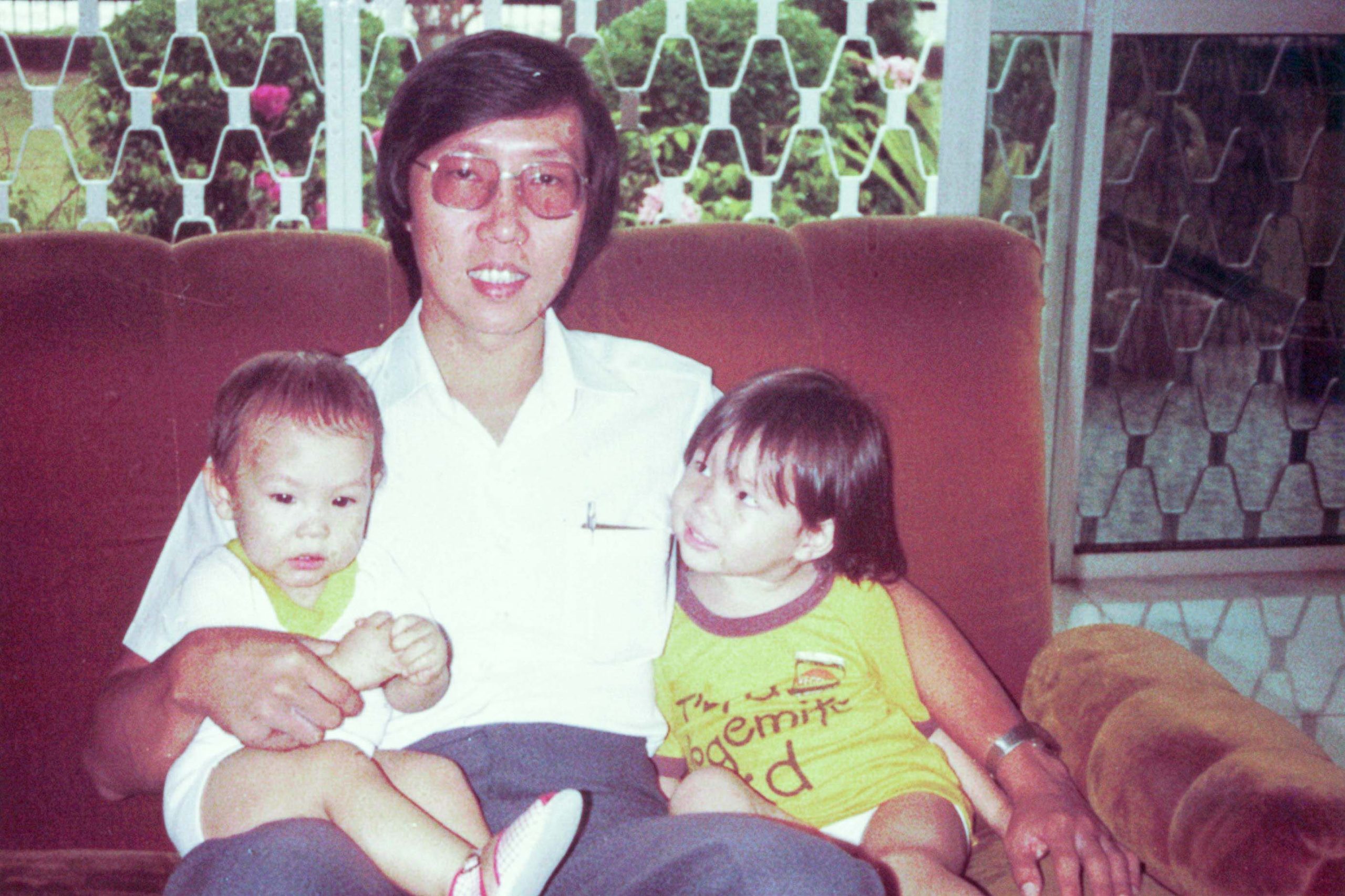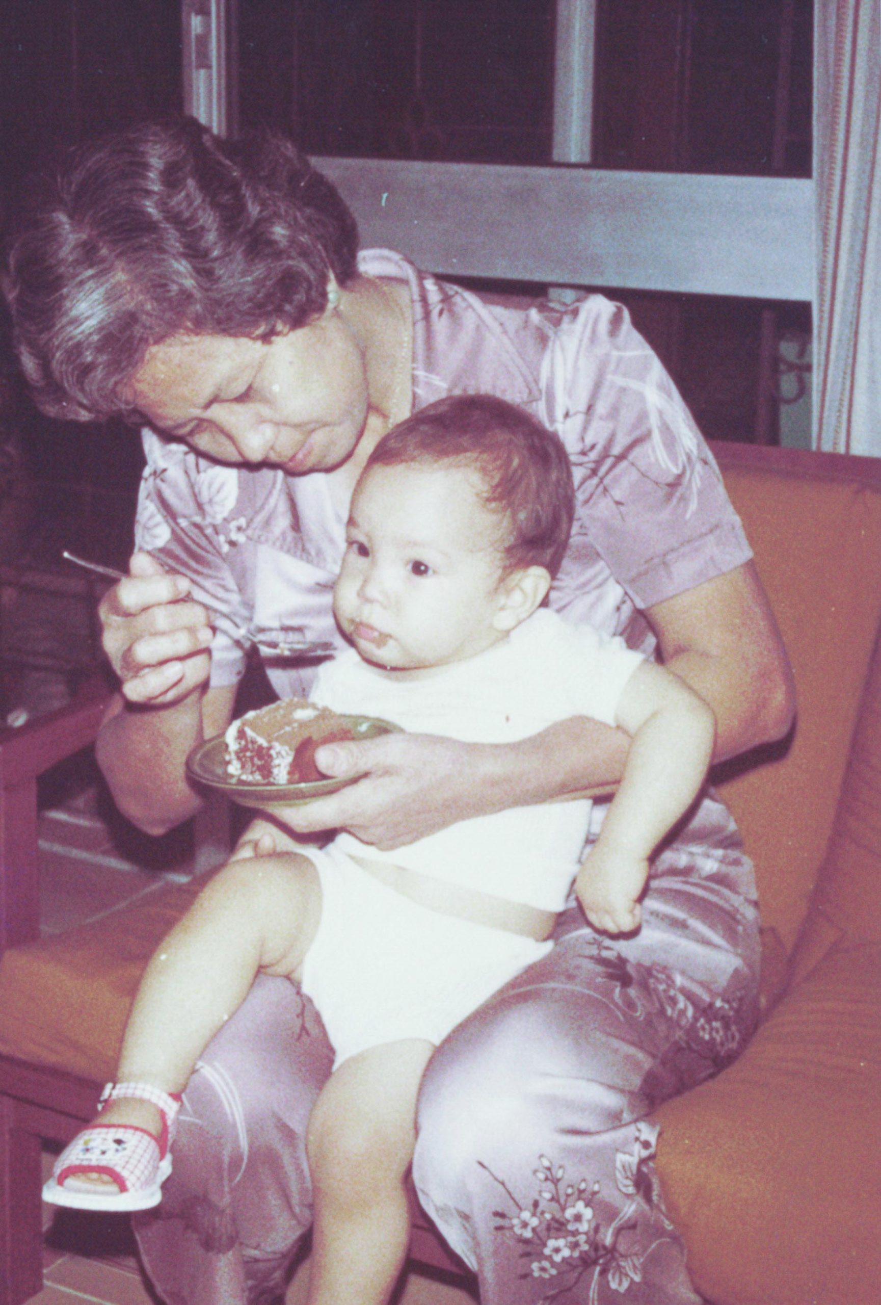 Enjoying birthday cake with Ah Chim