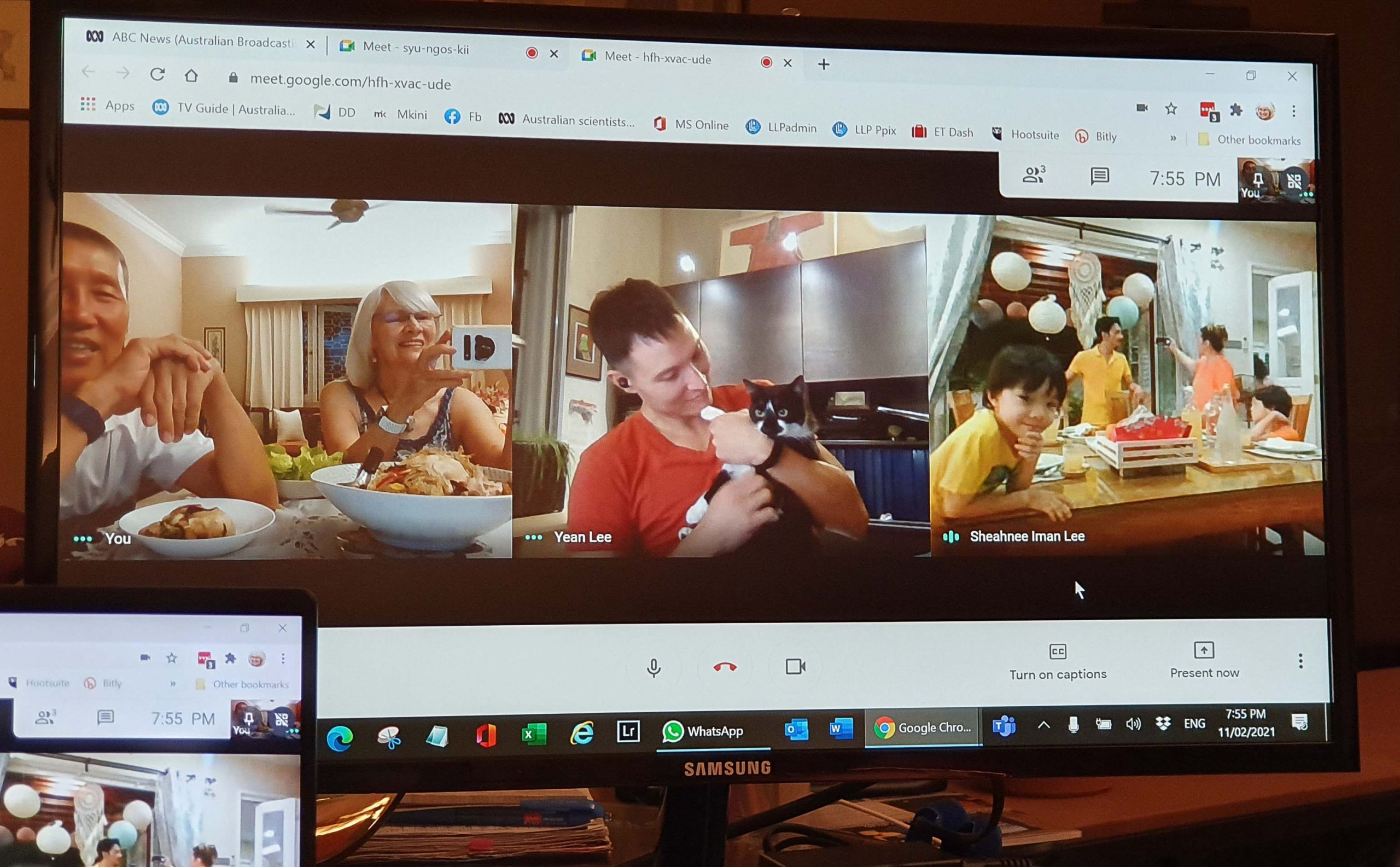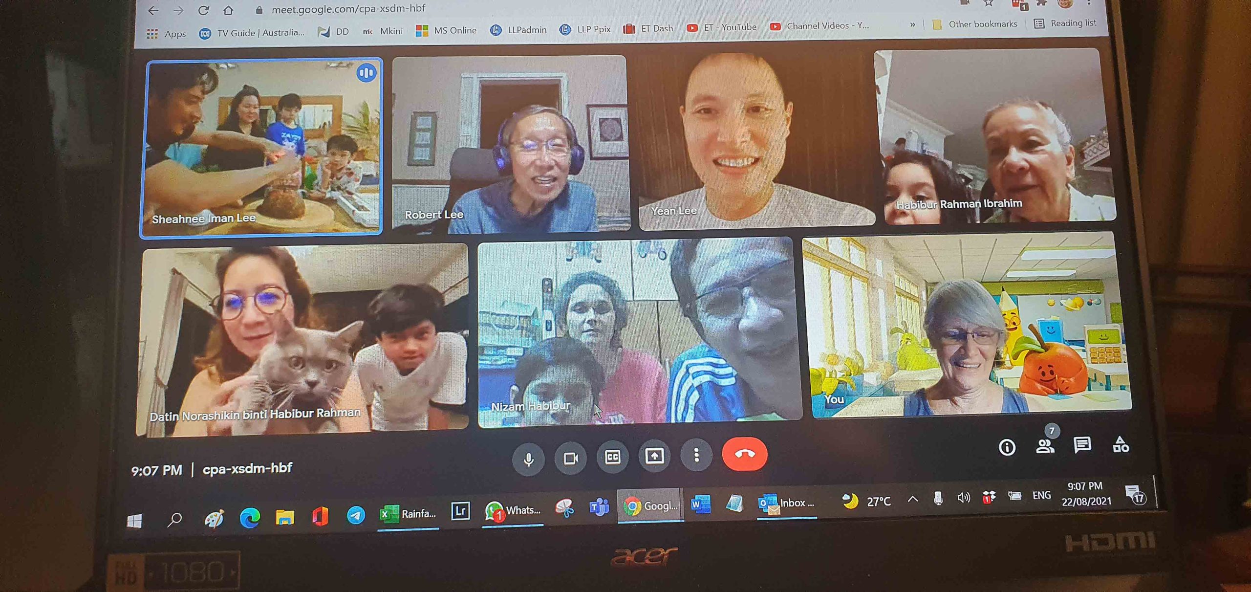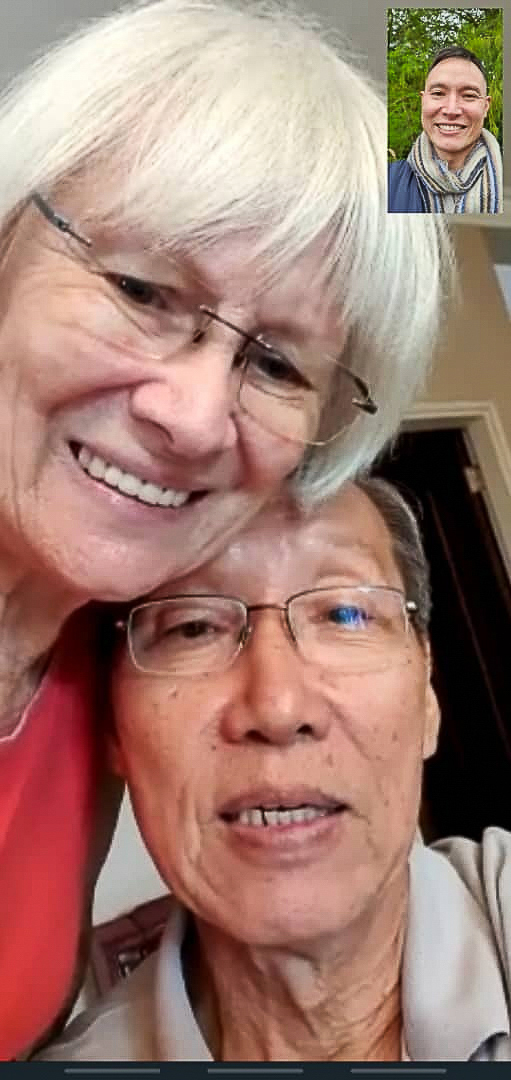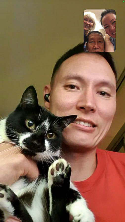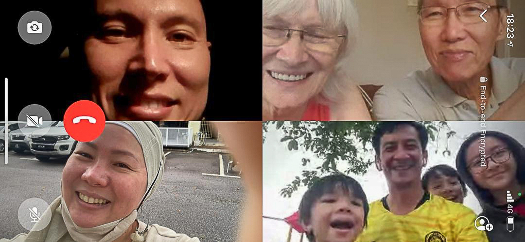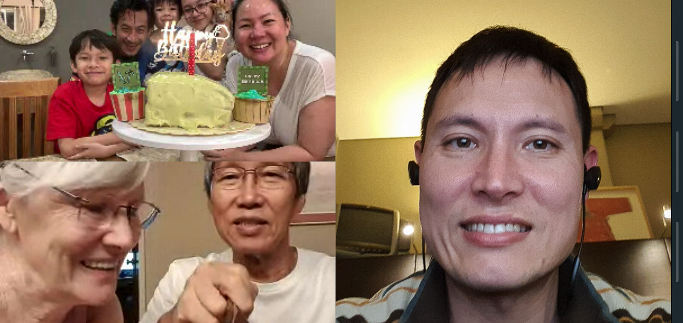 Nee’s online birthday on WhatsApp. With a home made pandan birthday cake