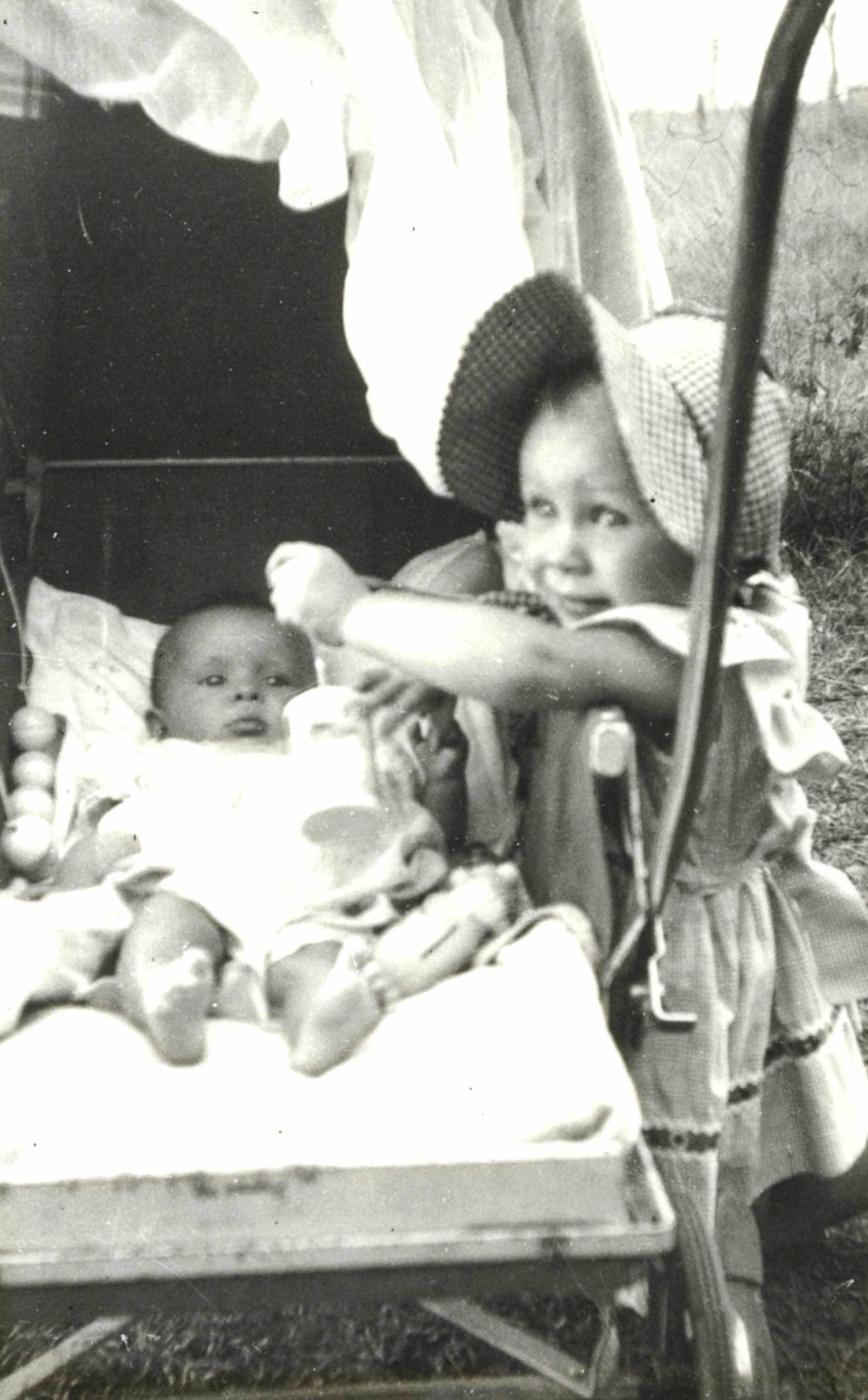 1962 Cobar, Dad with cousin John, His claim to fame - he fell out of the tallest tree in Cobar and split his lip.