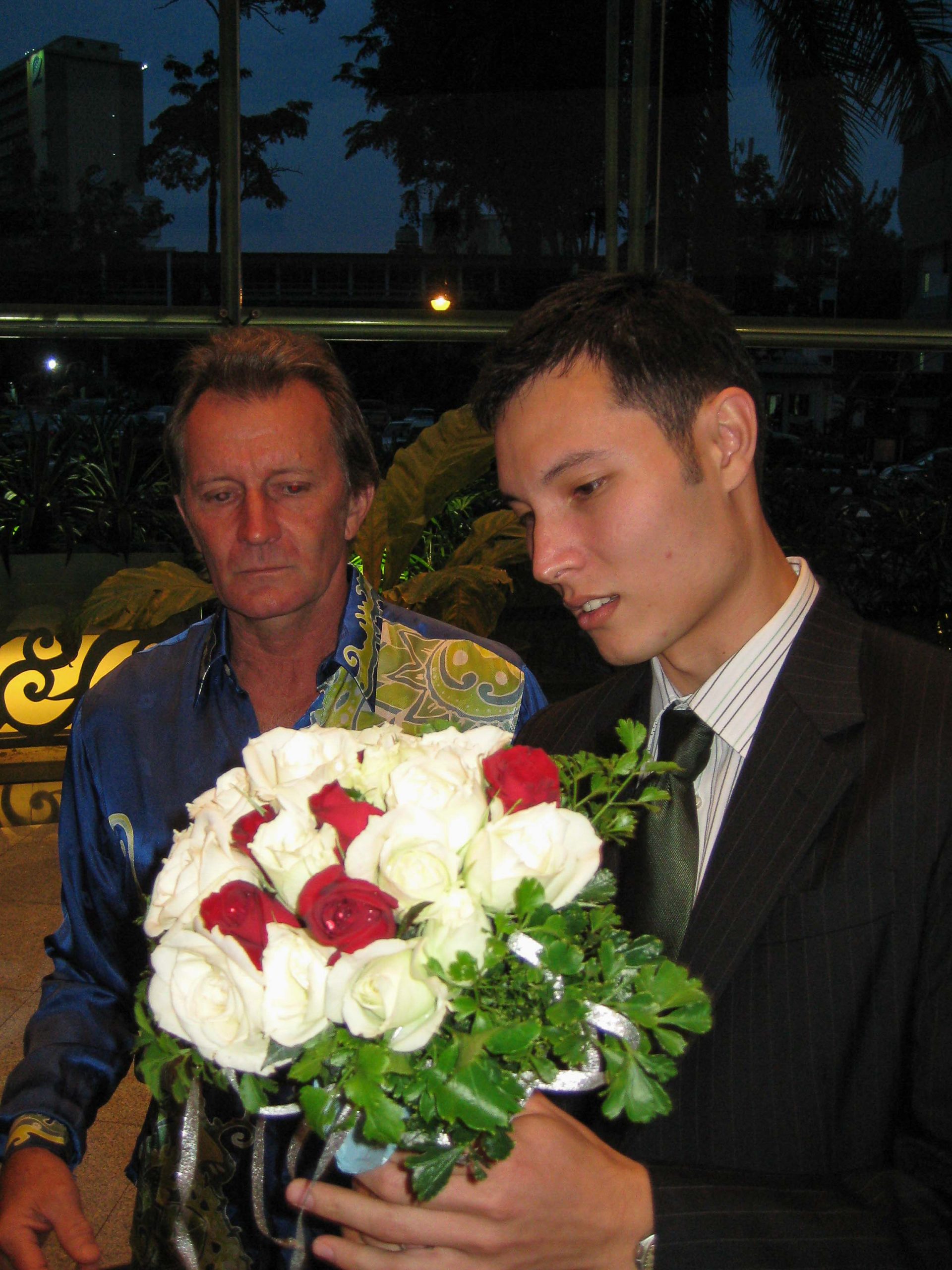 In charge of the bouquet, while we wait. And wait. And wait. They forgot to send a car for the bridal couple!