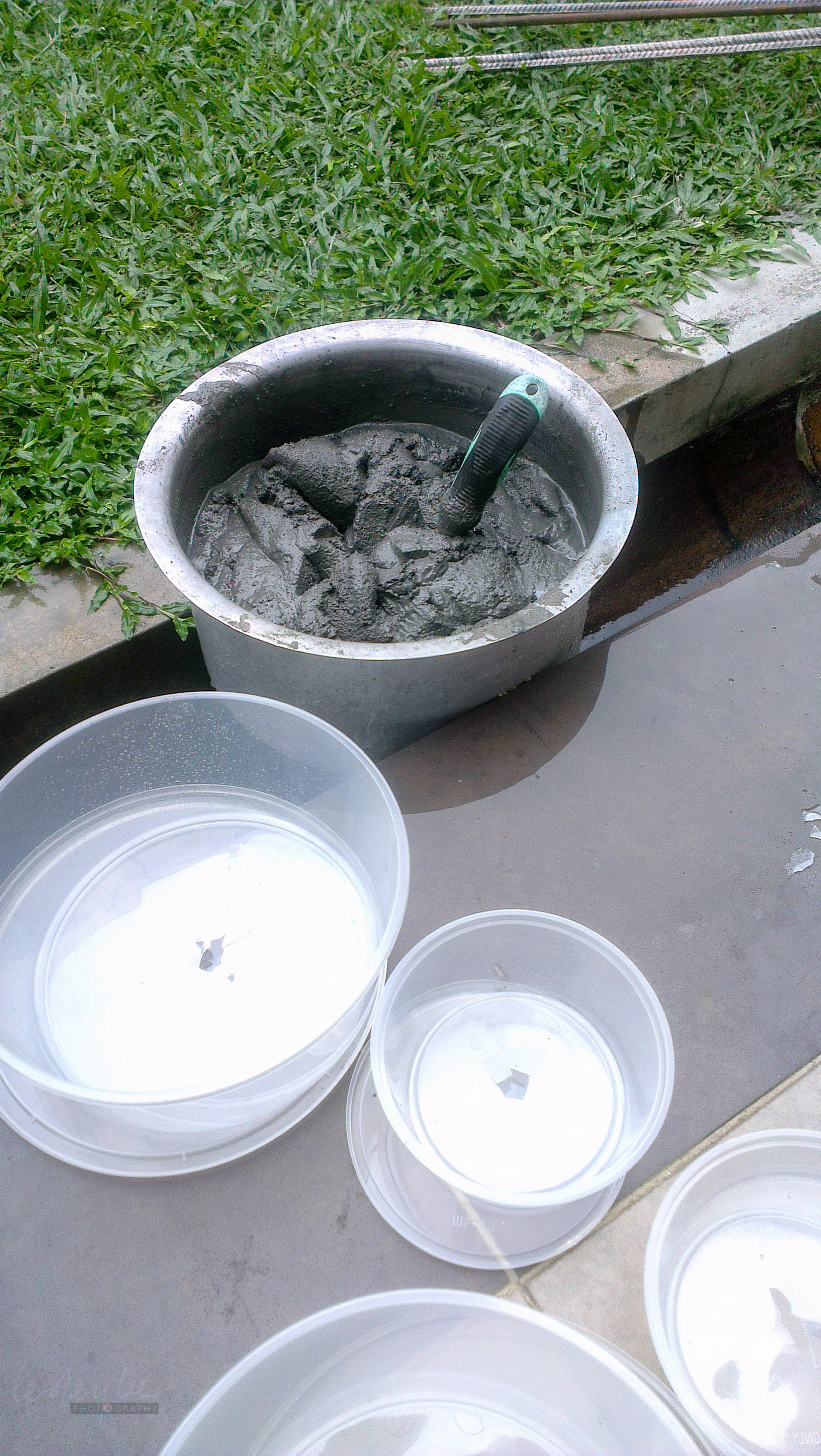 mixing the sand & cement