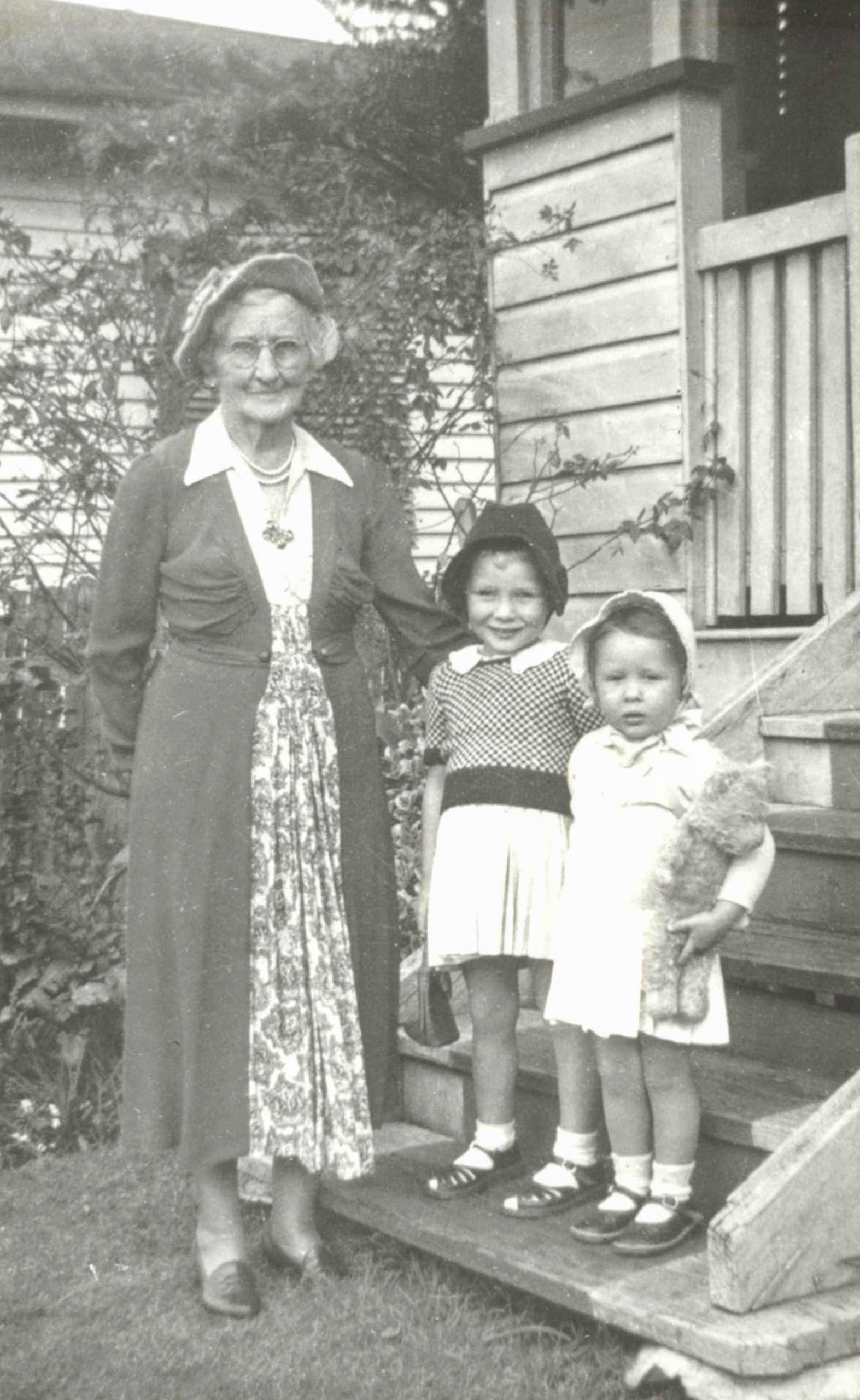 On the front steps of where grandma lived in Toowoomba. Most likely Clairmont St (Electoral Roll)