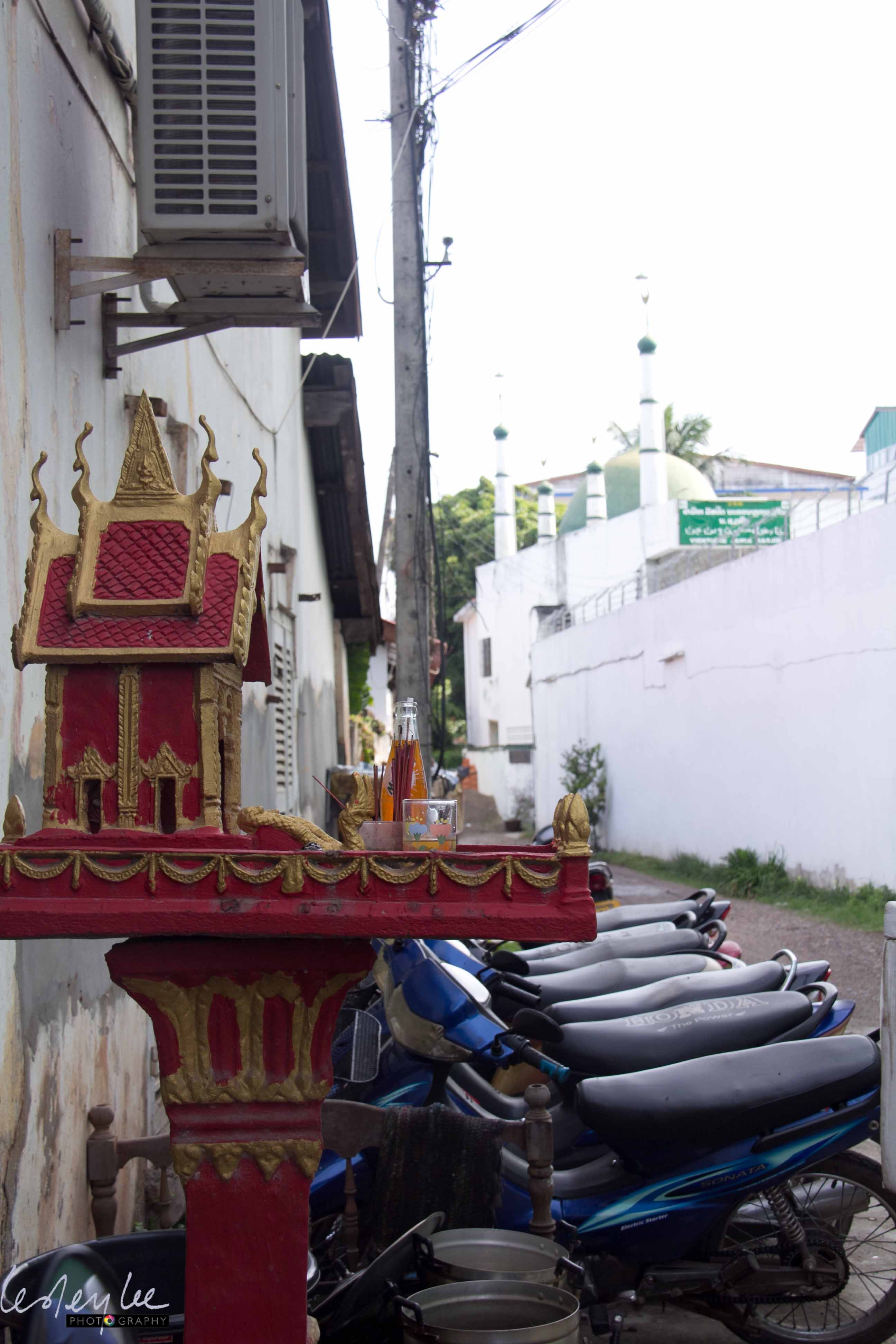 Spirit house and a mosque in the back streets