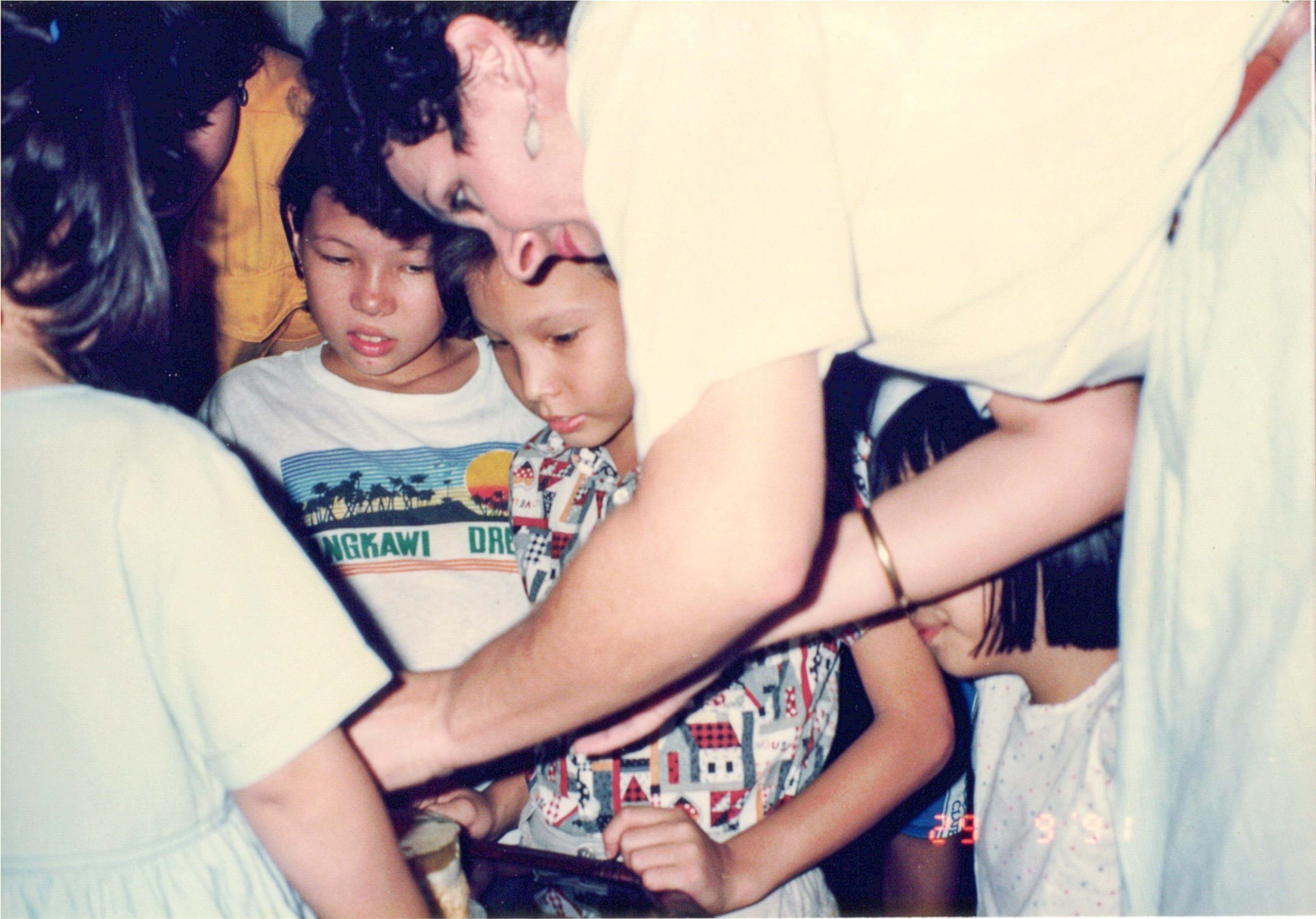 Aunty Janet helps with the cake.
