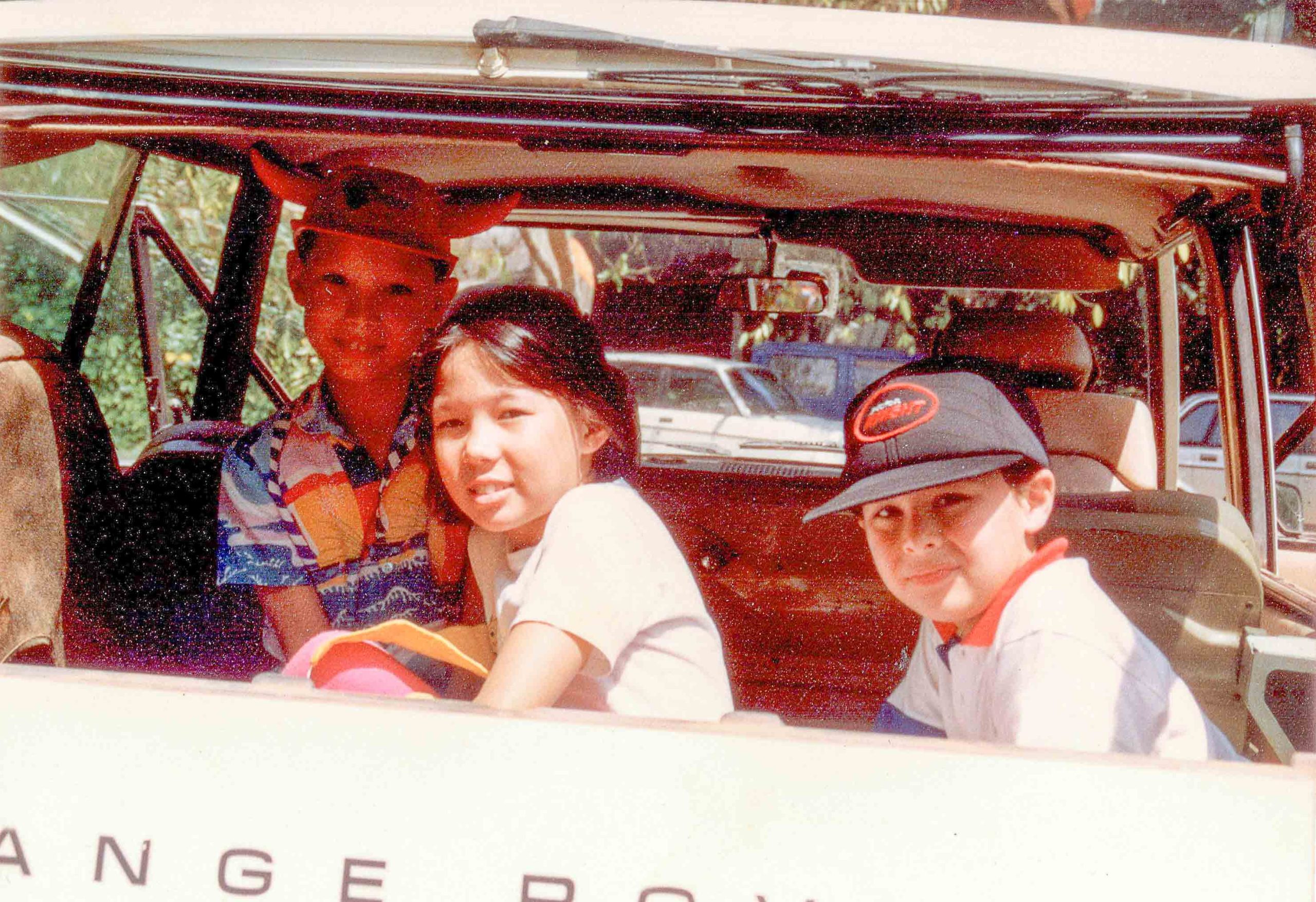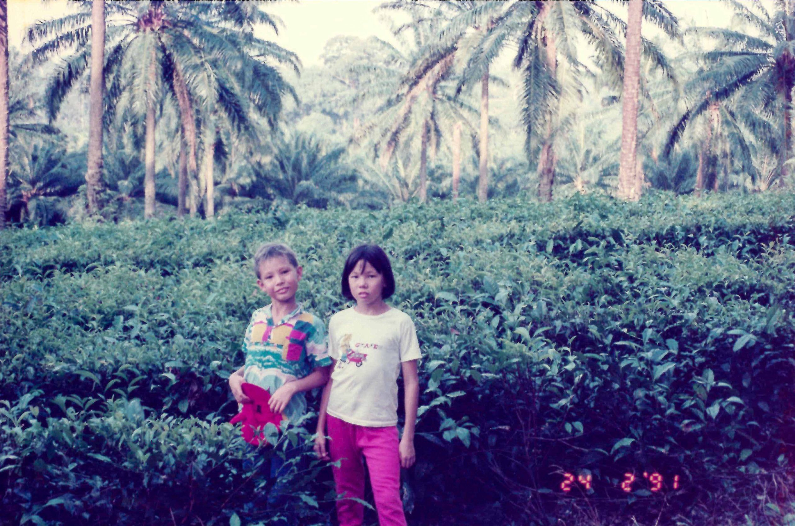 With Alistair in the back of Uncle Alan's Range Rover. Boh Tea Plantation.