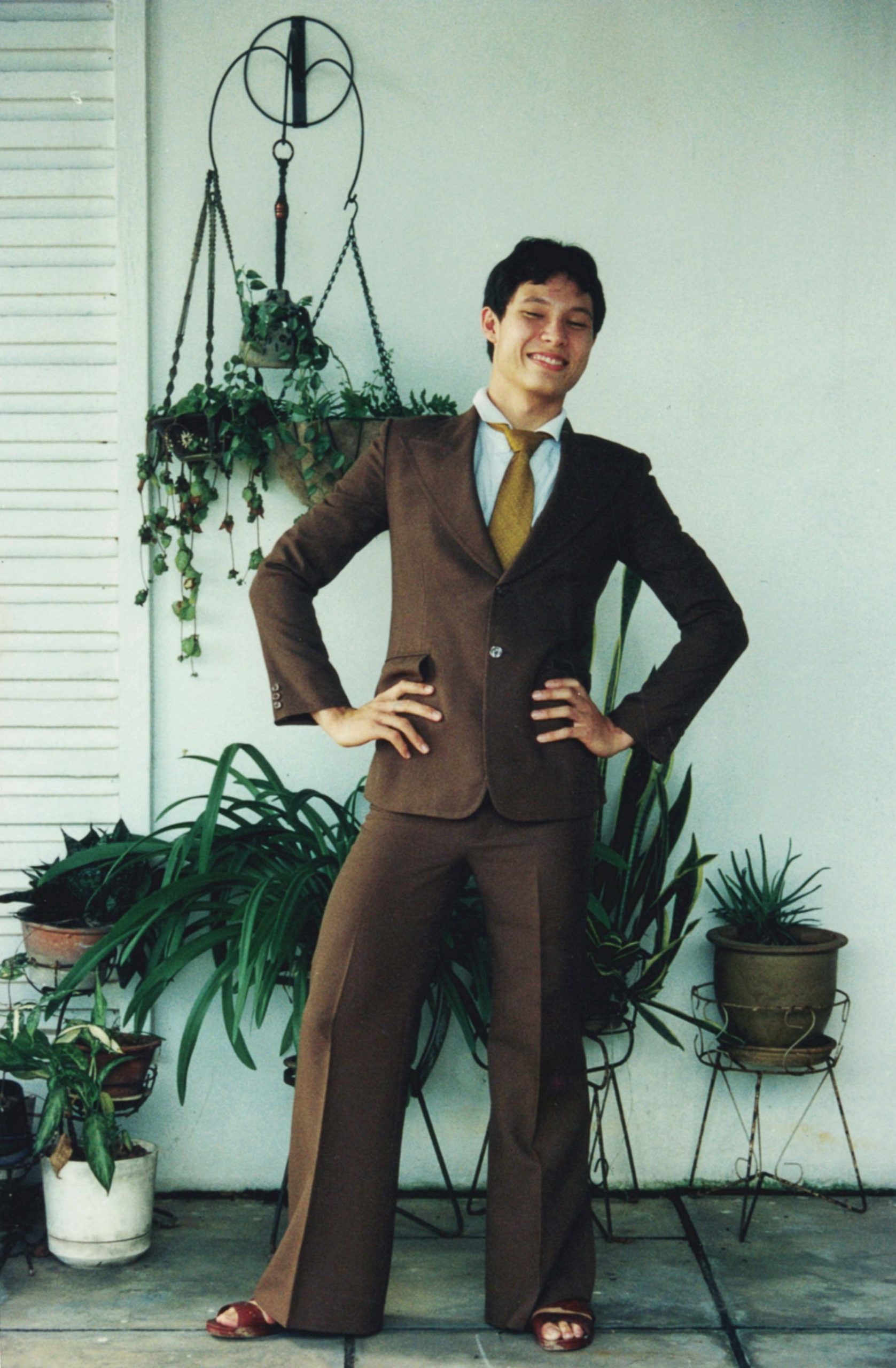 Wearing dad’s old 70s suit that probably wore about once